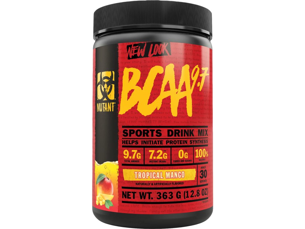 Mutant BCAA 9,7 jsou instantizované aminokyseliny BCAA v poměru 2:1:1 obohacené o směs elektrolytů, aminokyselin (taurin, glycin, L-glutamin, L-arginin, L-tyrosin) a BioPerine® pro ještě lepší absorpci. Přidáno elektrolyty zabezpečují přísun důležitých minerálů, které jsou zodpovědné za správné fungování svalů a hydrataci těla. Aminokyseliny s rozvětveným řetězcem BCAA podporují růst svalů, jejich udržení a zlepšení regenerace po fyzickém výkonu.